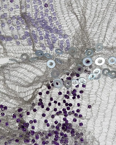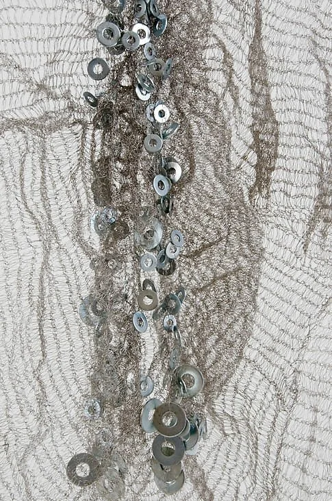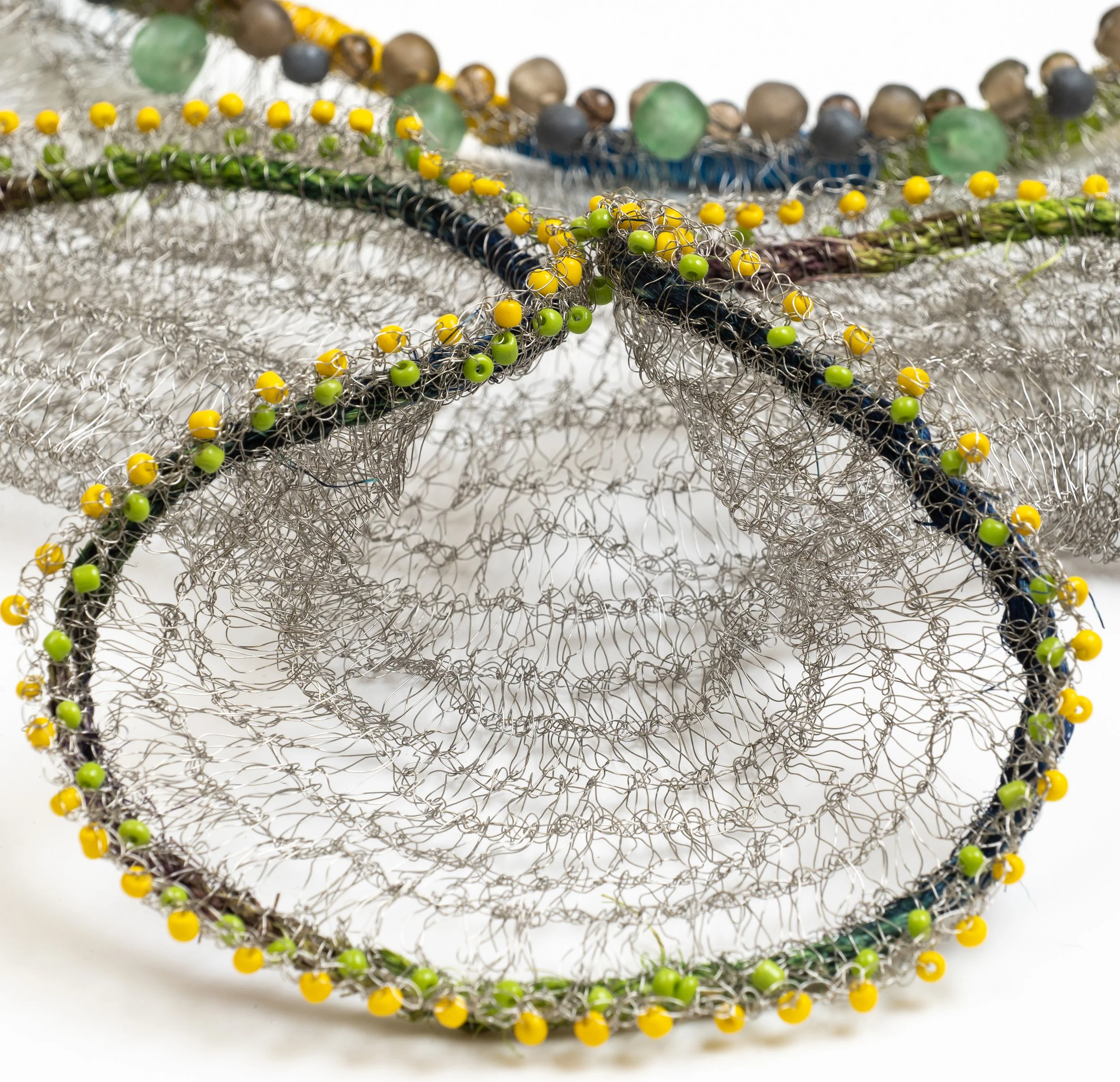 Working primarily with stainless steel wire, sheet metal, and fiber, Wanjiku creates sculptural pieces that honor inherited practices while extending them into innovative contemporary expressions.