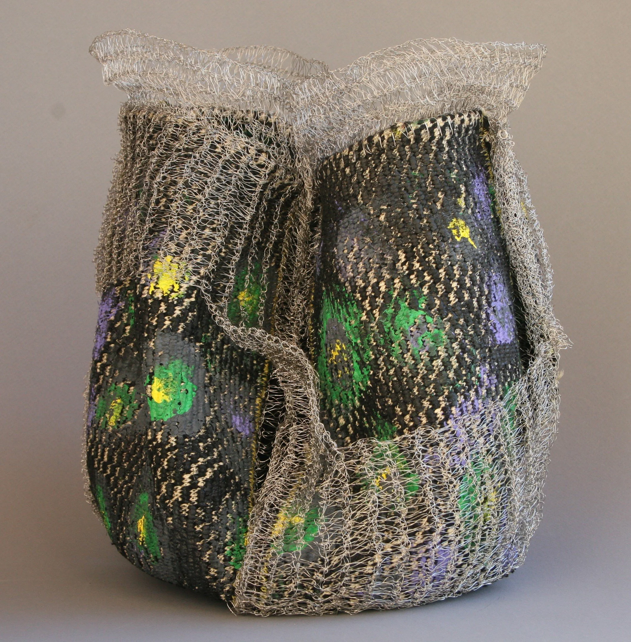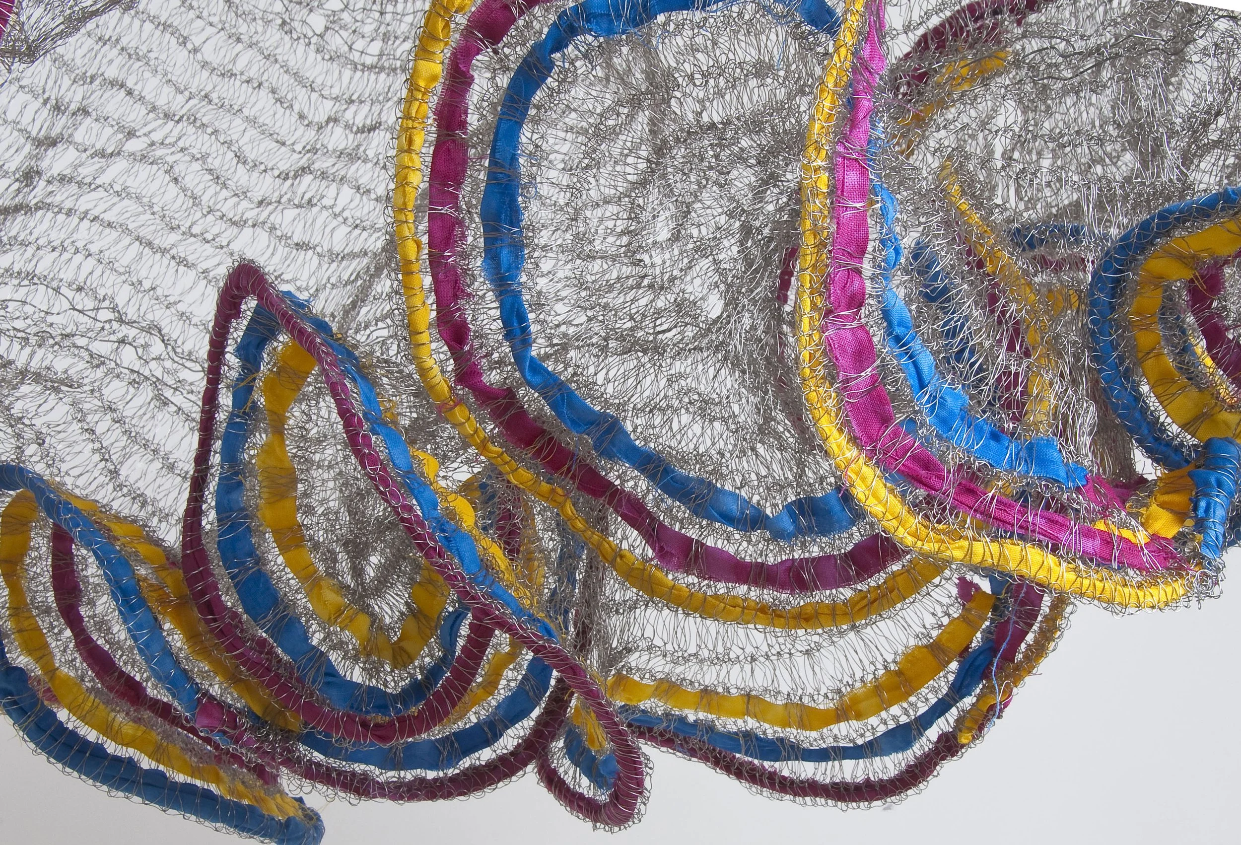 Working primarily with stainless steel wire, sheet metal, and fiber, Wanjiku creates sculptural pieces that honor inherited practices while extending them into innovative contemporary expressions.